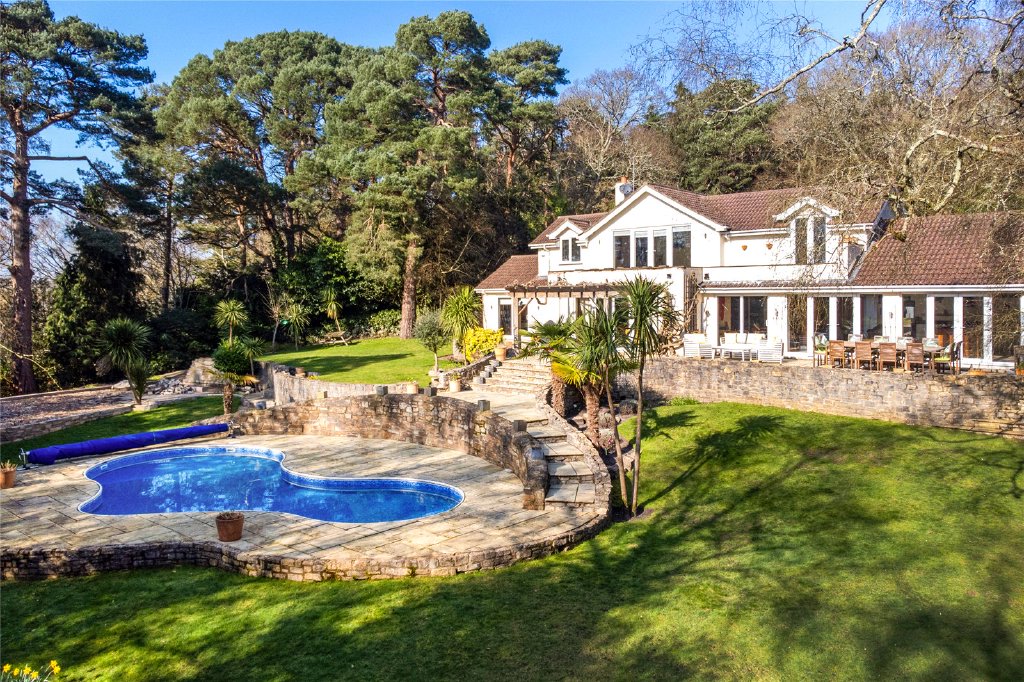 Offered to the market for the first time in over twenty years, this exceptional country residence presents a rare opportunity to acquire a home of both elegance and tranquillity. Extending to over 3,600 sq ft and set within approximately 1.5 acres of beautifully maintained grounds, the property is discreetly positioned down a private lane, offering an outstanding level of privacy alongside refined family living. The home is further complemented by manicured gardens, a heated swimming pool and a double garage with extensive parking.