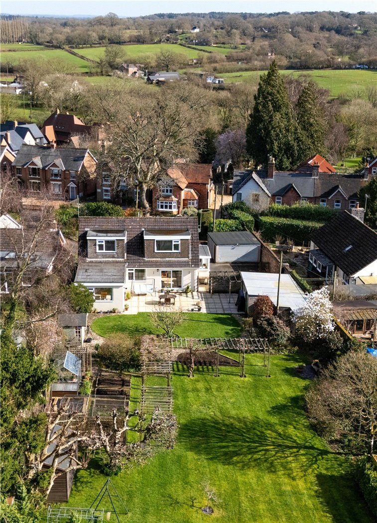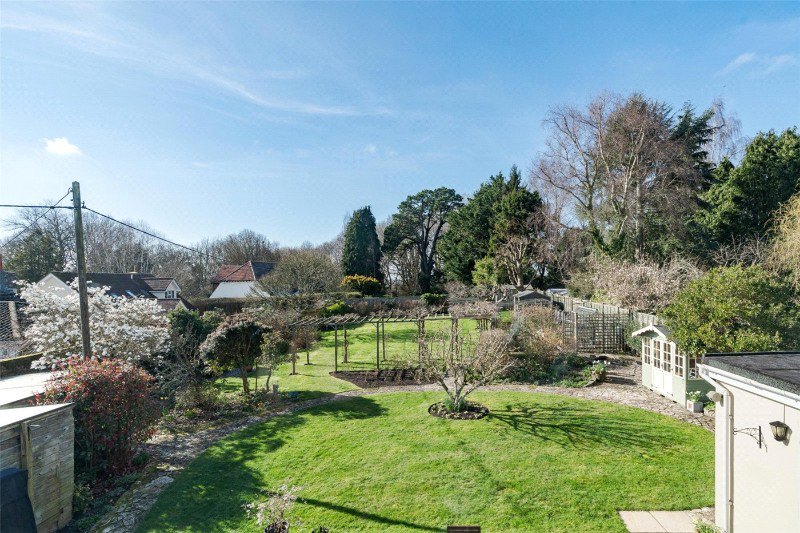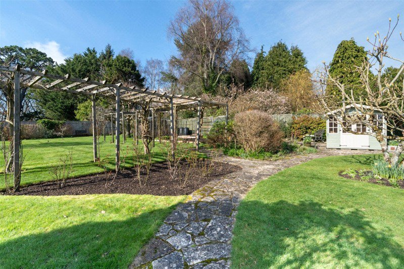 The westerly facing rear garden is a particular feature of the property, with an extensive garden patio ideal for al fresco dining, lawns threaded by paved pathways, thoughtfully placed pergolas, mature trees, vibrant shrubs, raised vegetable beds, fruit cages, greenhouse, garden shed, and a summerhouse enjoying a paved seating area with a pond. The gardens are worthy of note.