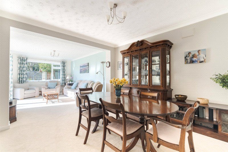 A bright and spacious 5 bedroom detached chalet style home standing on a large, westerly facing garden plot of about half an acre, in this sought after village of Furzehill, just over a mile from Wimborne town centre. The gardens are a particular feature of the property, with a detached double garage and an additional car port.