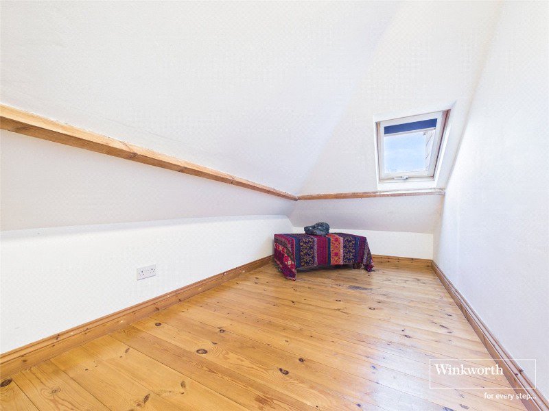 On the first floor are three bedrooms and a family bathroom brimming with character, featuring a charming corner bath. The second bedroom provides access to a versatile loft room on the top floor which is fully insulated and perfect for use as a studio, gym, study, or occasional guest bedroom.
