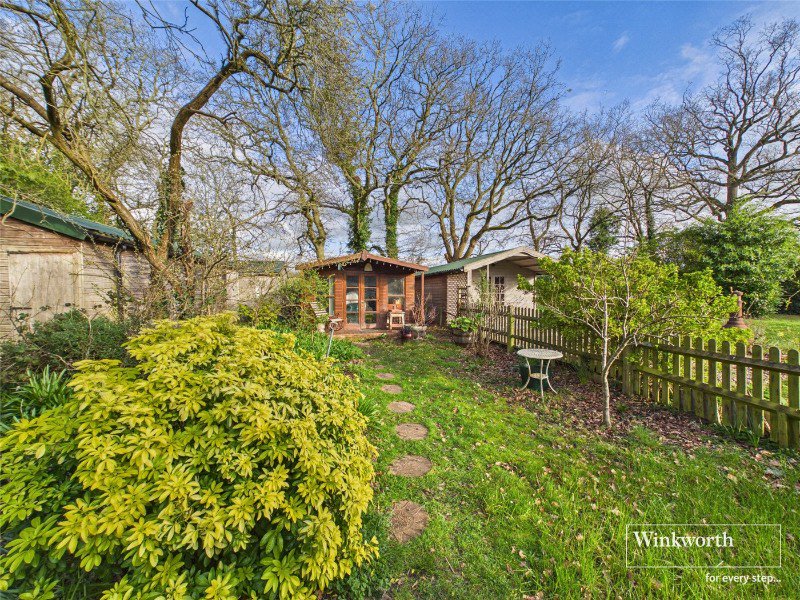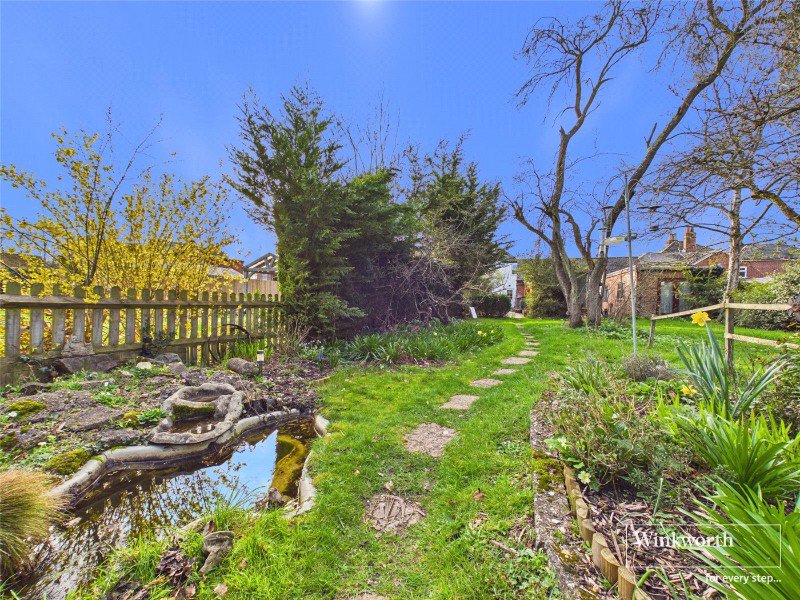 Externally, the property enjoys an impressive 200ft rear garden backing directly onto Mortimer Common, with private lockable gated access onto the common itself. The garden offers a wonderful sense of space and privacy, featuring a lawn, mature shrubs, and a patio area ideal for outdoor entertaining. At the far end of the garden sits a substantial artist’s studio, providing excellent potential for creative or home-working use.