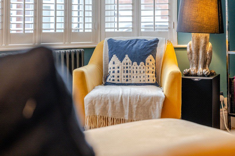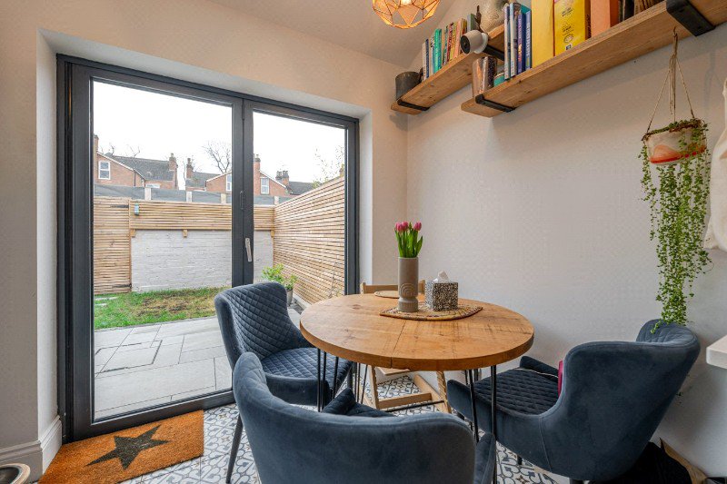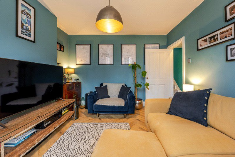 To the front of the house is an elegant bay-fronted sitting room, a bright and inviting reception space featuring large windows fitted with plantation shutters which allow for excellent natural light. Finished in contemporary tones, this room provides a comfortable setting for everyday living while retaining the charm expected of a Victorian home.