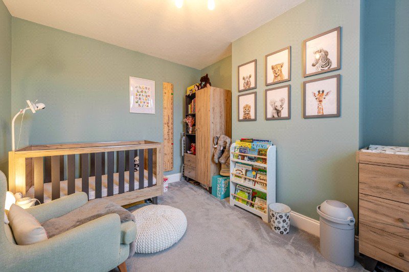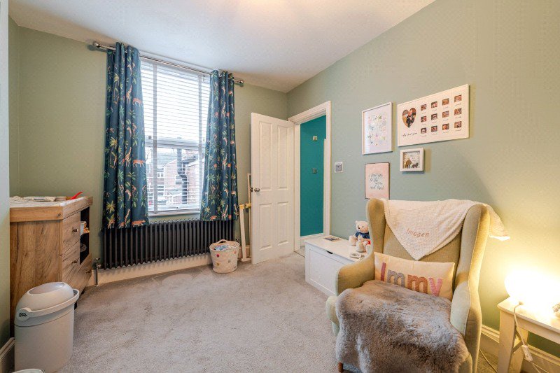 On the first floor, the principal bedroom is situated to the front of the property and benefits from a large bay window which floods the room with natural light. This generous double bedroom offers ample space for freestanding furniture and wardrobes and has the added benefit of an en-suite shower room. A second well-proportioned bedroom overlooks the rear garden and is currently arranged as a comfortable guest or children's room.
