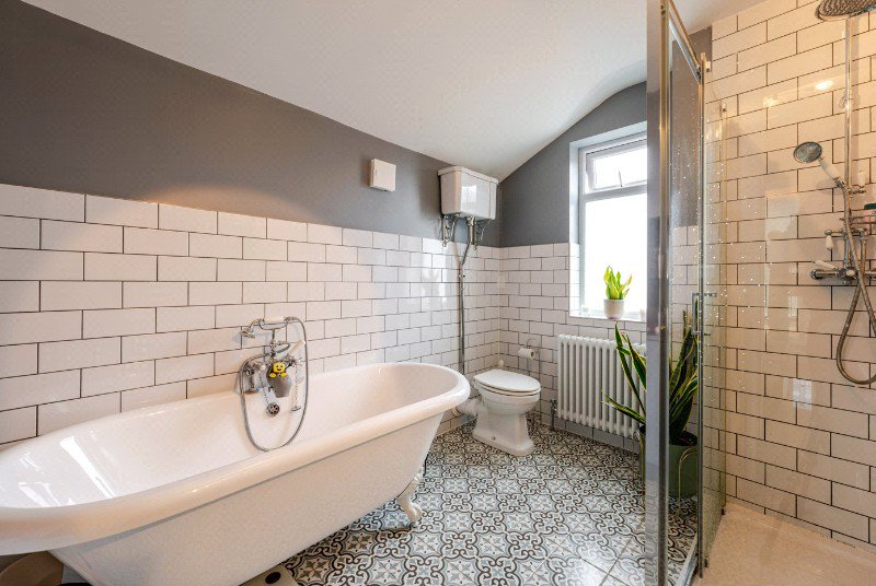 Completing the first floor is the family bathroom, a particularly impressive space created by converting what was previously a fourth bedroom. The room now provides a beautifully appointed suite featuring a freestanding roll-top bath, separate walk-in shower, wash hand basin and WC, finished with stylish tiled flooring and contemporary fittings.