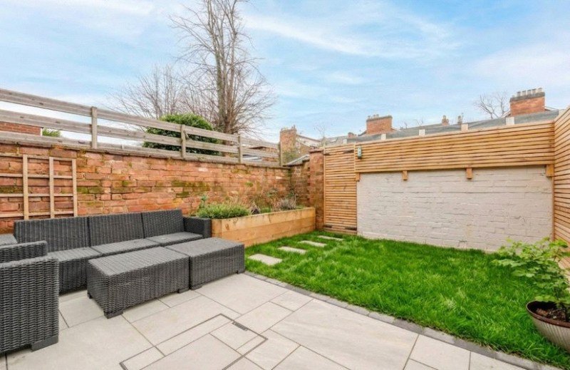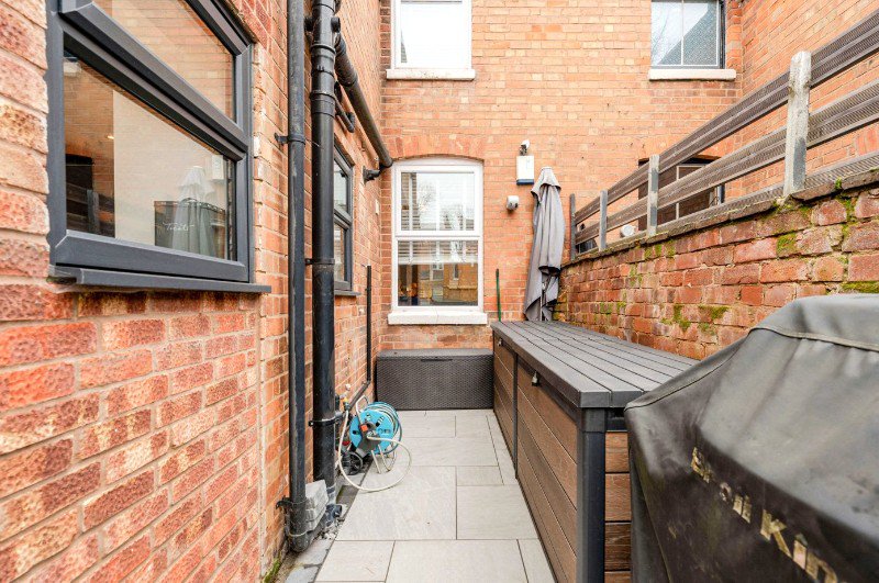 Externally, the property enjoys a private rear garden, with a paved terrace directly outside the kitchen providing the perfect setting for outdoor dining and entertaining. Beyond this is a lawned area offering further space to relax, all enclosed by attractive fencing which ensures a good degree of privacy. A garden gate to the rear provides access for bins.