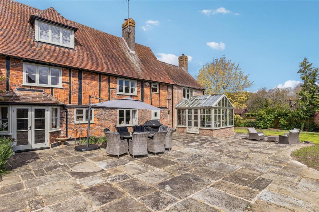 Hudnall Common Farm is an attractive period home with an abundance of character and charm situated in one of Hertfordshire's most desirable villages. The current owners have enjoyed this fabulous property for the last twenty years and have substantially improved the property throughout this time. The spacious entrance hall is warm and welcoming with a feature fire place and log burning stove and views out to the rear garden. The snug has an attractive bay window to the front aspect whilst the sitting room is split level and generously proportioned. Being triple aspect, this room enjoys plenty of natural sunlight and provides access to the Amdega conservatory. Completing the ground floor accommodation, there is a cloakroom accessed from the entrance hall. To the first floor the principal bedroom has a dressing room and en-suite. There are three further bedrooms, a bathroom and shower room. On the second floor, there is a further room currently used as an office. Outside, Hudnall Common Farm is approached via a long, gated driveway leading to the house, car port, and annexe. The annexe is a superb additional space to the main house, perfect for extended guest stays or for permanent living family members who require their own space. The grounds extend to approx 1.5 acres and include the well maintained tennis court. To the rear of the property there is a large patio area which is southerly facing, ideal for entertaining in the warmer months.