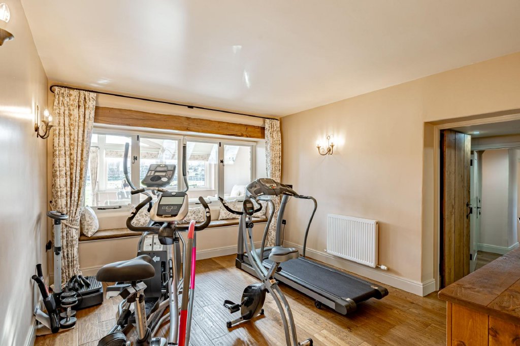 A further versatile room currently arranged as a study and gym offers flexibility depending on the needs of the next owners, equally suited to use as a home office, snug or television room.