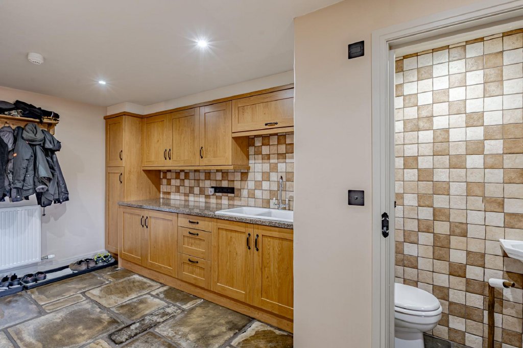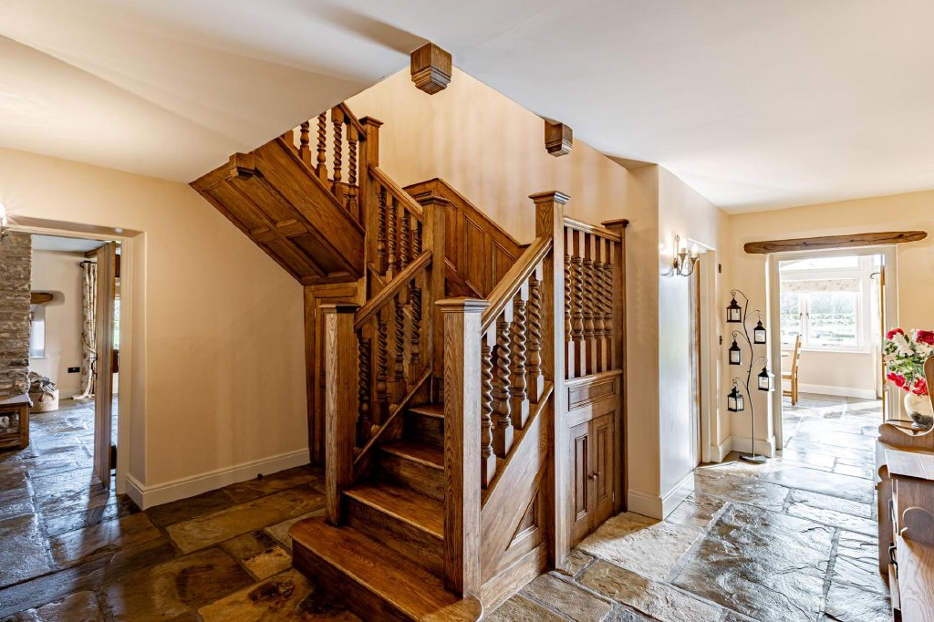 Arrival at the property immediately hints at the quality found throughout. A beautifully crafted front door opens into a welcoming entrance hall where reclaimed stone flooring, hand-built internal doors with traditional ironmongery and a magnificent bespoke staircase set the tone. The attention to detail and craftsmanship is evident from the moment you step inside. Just off the hallway is a practical boot room with its own external entrance, an invaluable feature for country living after returning from walks across the surrounding fells. This space provides generous storage alongside laundry facilities and a cloakroom WC, while a well-appointed bathroom with shower is also located off the entrance hall.