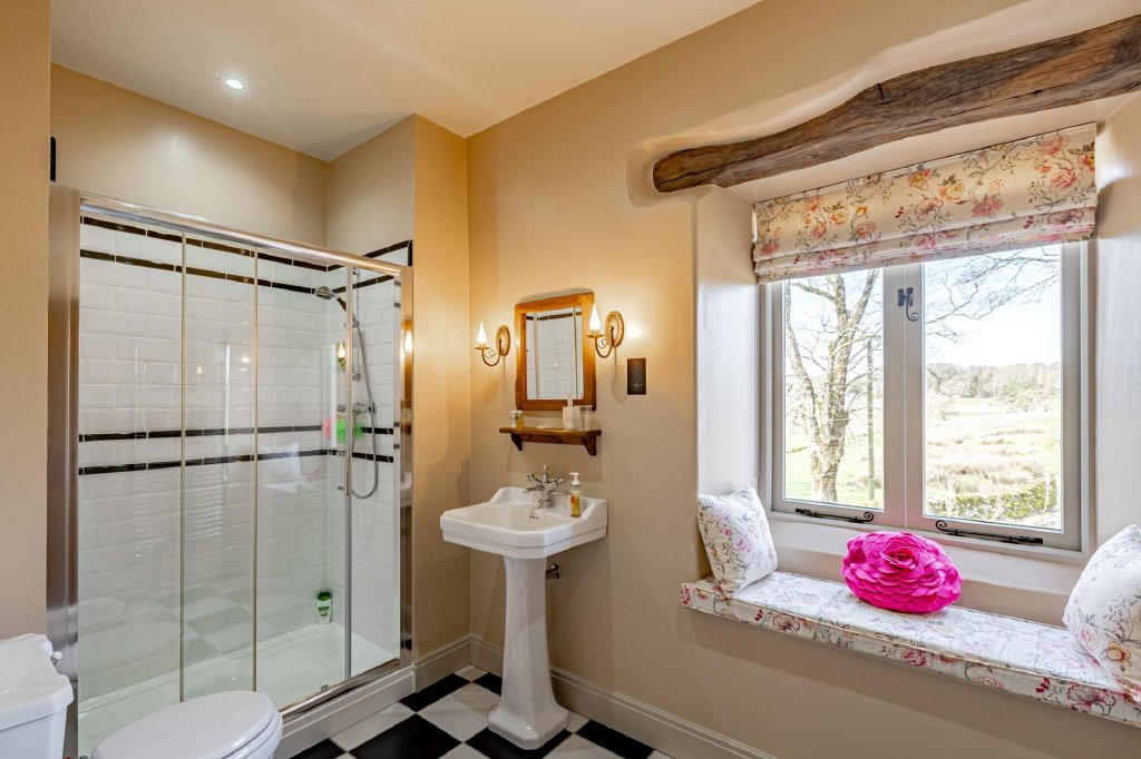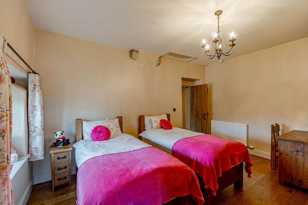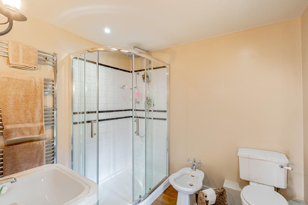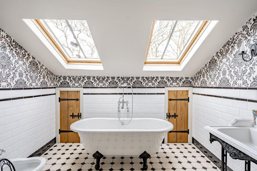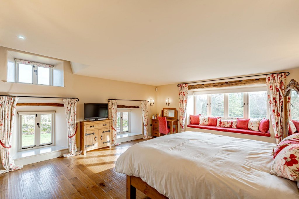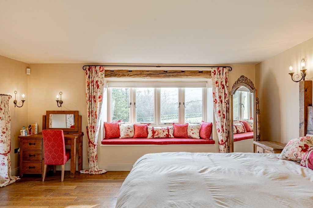 Upstairs, a spacious landing leads to the principal bedroom suite, a characterful and beautifully proportioned room enjoying spectacular views across the surrounding countryside. A charming window seat provides the perfect place to sit with a book while taking in the landscape beyond. The room benefits from two built-in wardrobes and a stylish ensuite shower room finished to a high standard. Additional accommodation on this floor includes a second double bedroom with ensuite, a further double bedroom, a single bedroom and a beautifully appointed family bathroom featuring a freestanding bath, large walk-in shower and useful storage tucked neatly within the eaves.