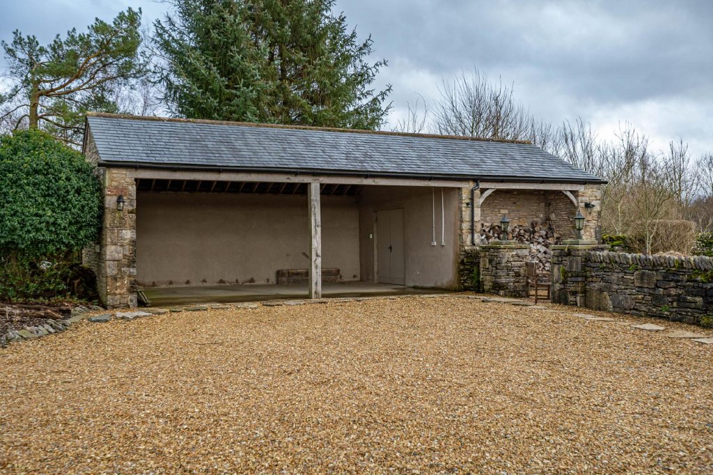 Outside, the property sits within approximately 1.4 acres of beautifully maintained grounds. A sweeping driveway leads to a generous gravel parking area and an attractive oak-framed covered parking structure with two large bays, accompanied by a useful storage room ideal for bicycles, outdoor equipment and gardening tools. This building has active planning permission to create a “coach house” which could be used as extra accommodation or another holiday apartment.