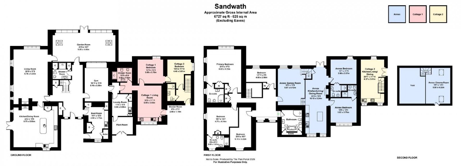 Sandwath, originally built in 1830, offers substantial and highly versatile accommodation centred around a beautifully restored main residence, complemented by a two-bedroom annex with a dramatic double-height living space, as well as two additional one-bedroom cottages that provide ideal guest accommodation or the potential for holiday letting. Together they create a unique small country estate that lends itself equally well to family life, entertaining and income generation.