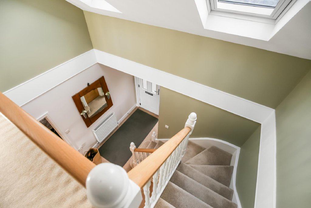 FIRST FLOOR Galleried landing overlooking hallway, radiator, two skylight windows to front aspect, doors to primary rooms.
