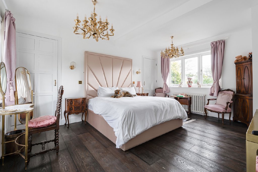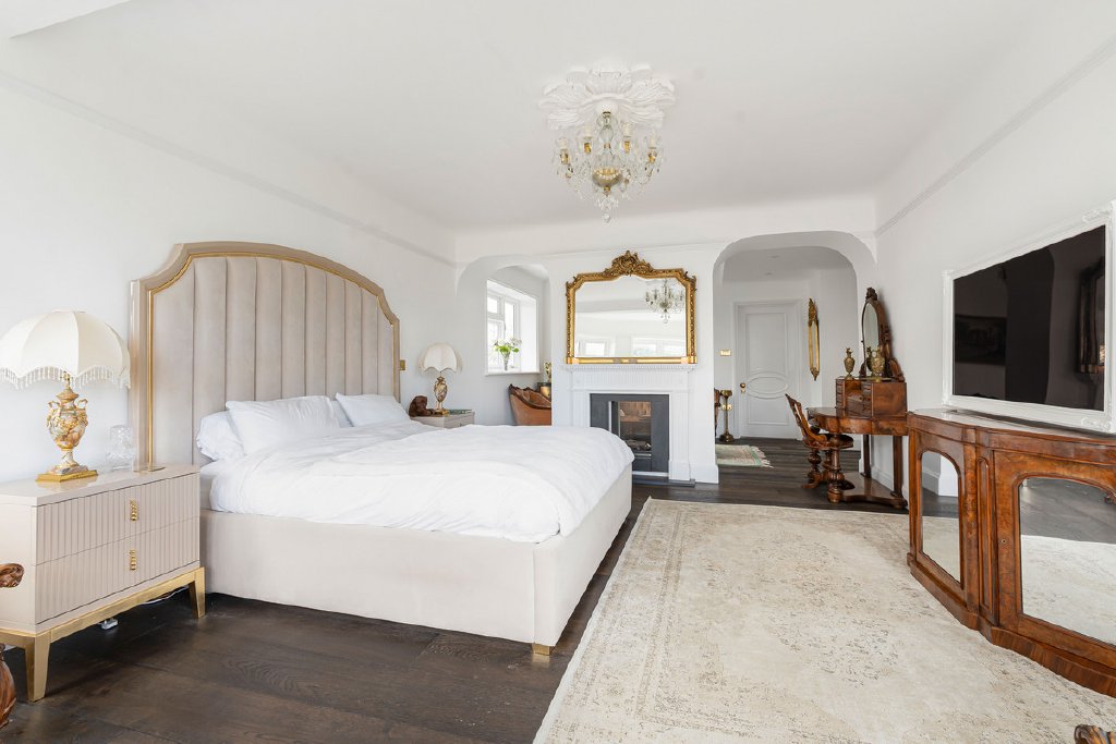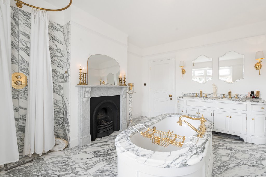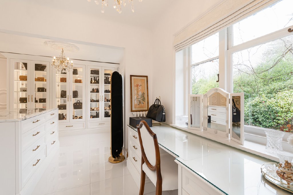 The bedroom accommodation is equally impressive. Within the main house there are five beautifully appointed bedrooms, including two elegant en suite rooms, each finished to an exceptional standard. The family bathroom is a standout feature, finished with luxurious marble and premium fittings throughout. A bespoke dressing room offers floor-to-ceiling cabinetry, providing exceptional storage and a sense of boutique hotel indulgence.