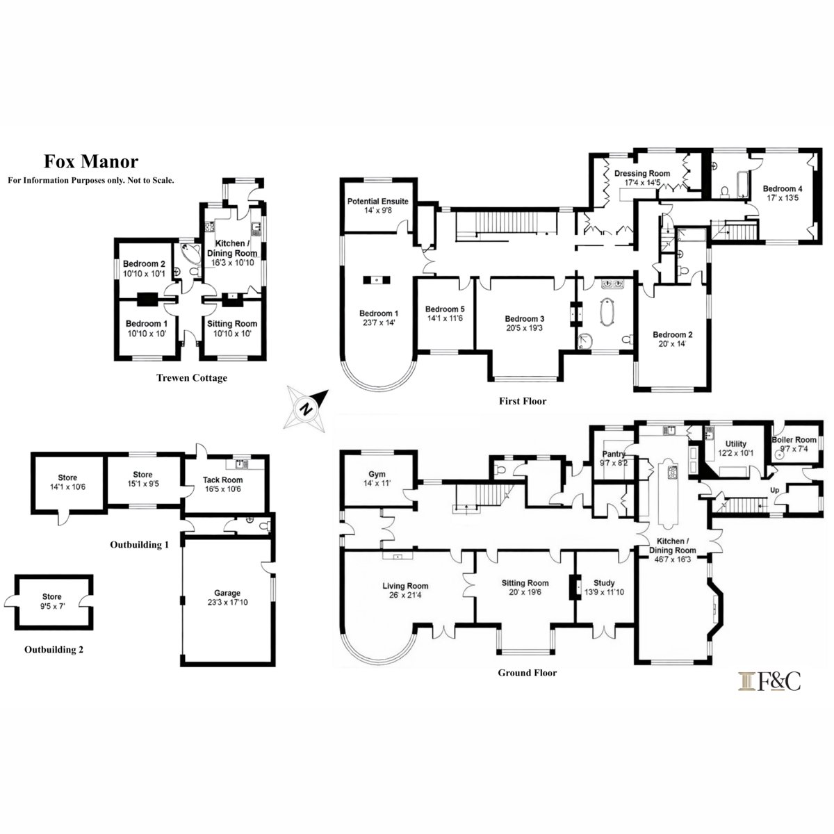 Meticulously renovated throughout, the principal house provides five beautifully appointed bedrooms, complemented by a separate two-bedroom detached cottage, ideal for guests, extended family or ancillary accommodation. Every element of Fox Manor has been thoughtfully curated, with breathtaking interior design evident in every room and an uncompromising attention to detail that elevates the property to a truly special offering.