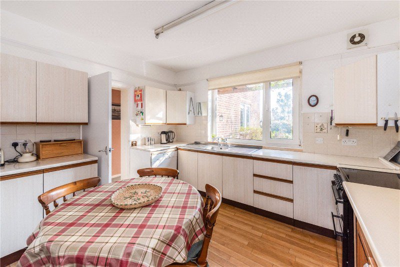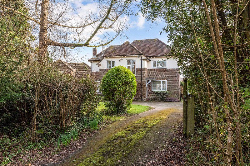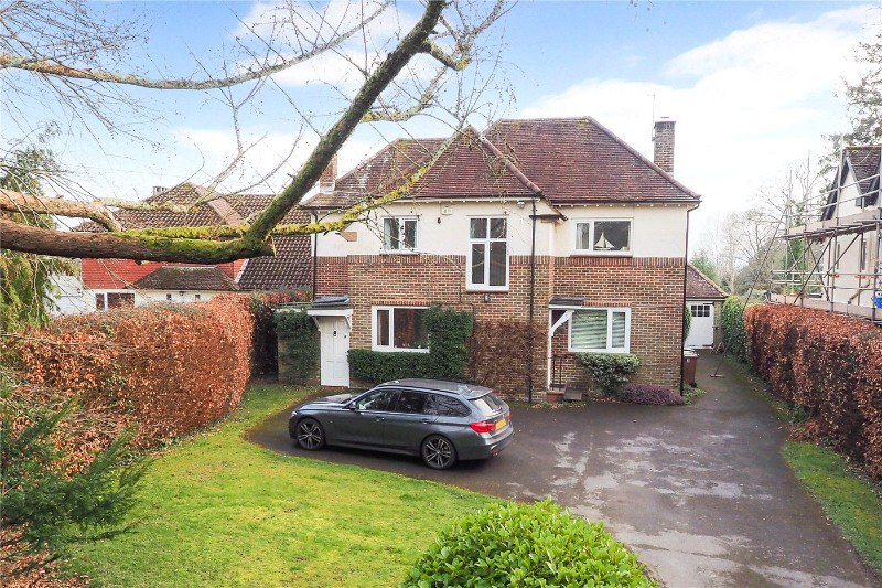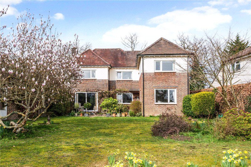 A rare opportunity to purchase a five bedroom detached family home in a sought-after position with a large plot and being sold with no onward chain. Situated in an elevated spot, there are distant views over surrounding rooftops and the Downs beyond. The layout can be seen in the floorplan and of particular note is the reception space, most notibly a large, double-aspect sitting room with an open fire and sliding doors that lead to a large patio area. The kitchen/breakfast room and dining also have a lovely south-facing apsect over the rear garden. From the hall, stairs rise to a first floor landing off which is the principal bedroom, a shower room, four further bedrooms and a family bathroom. Outside, the main garden is situated to the rear and being on the south side, is an ideal spot to entertain and relax during the summer months. Mainly laid to lawn, the garden is enclosed by hedging and in all, the house lies in a plot of approximately 0.39 of an acre. To the front, the house is approached by a large drive providing parking for several cars, to the left of which is an area of lawn and there is a single garage. Whilst the house has been loved over the years, it offers a tremendous amount of scope (subject to planning) to adapt, modernise and convert into a family house of the 21st Century.