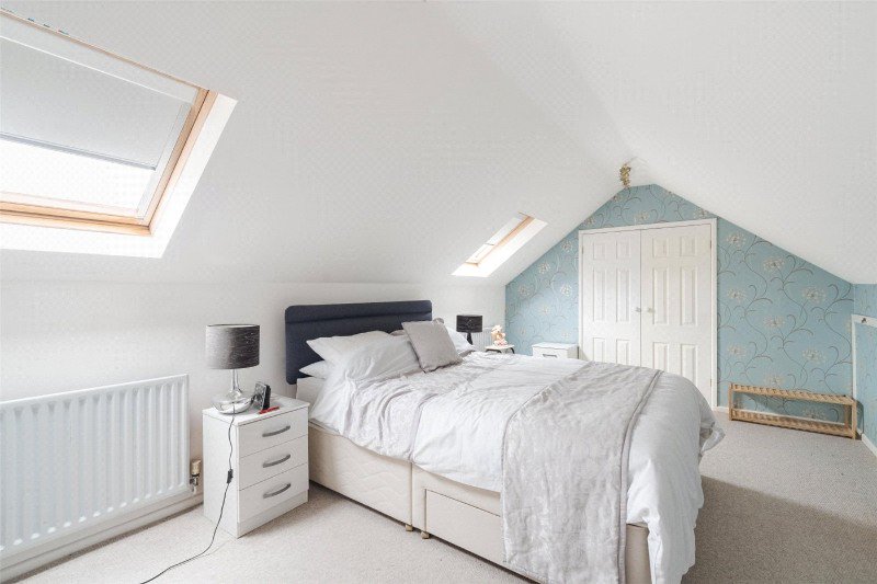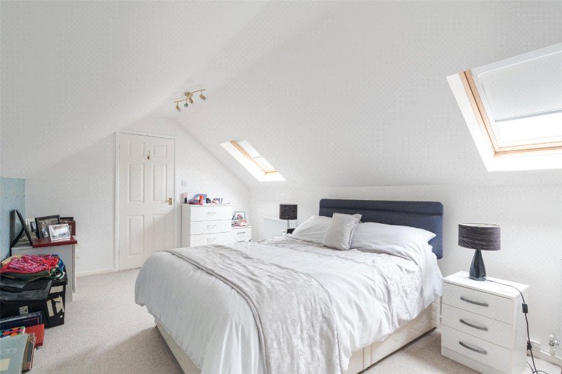 From the hall, stairs lead to a first floor landing with a large, walk-in cupboard. Bedroom 3 has 2 Velux windows and a walk-in wardrobe with access to eaves storage space. Bedroom 4 has a Velux window and access to eaves storage space.