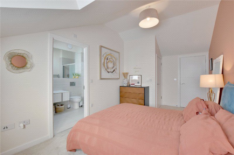 Upstairs is the master suite, a generous main bedroom with an en suite shower room, giving a real sense of separation from the rest of the house and a more “private retreat” feel.