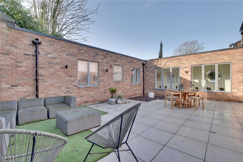Outside, the central courtyard is the standout feature, private, sun-catching and perfect for al fresco dining, evening drinks or a safe, contained space for children to play, with the added convenience of a parking space and the benefit of a strong EPC rating B.