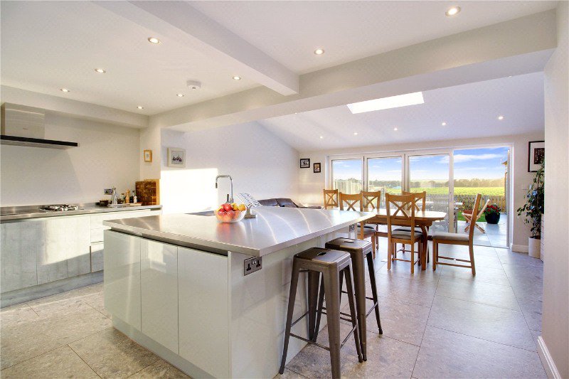 Entered by a hallway which has plenty of room for coats and shoes, you find the lounge set to the right. Offering a wide bay window which lets in plenty of light, there is a fireplace making a great focal point to the room. The heart of the home is the extended kitchen/diner which has bi-folding doors giving fantastic views over the fields set to the rear.