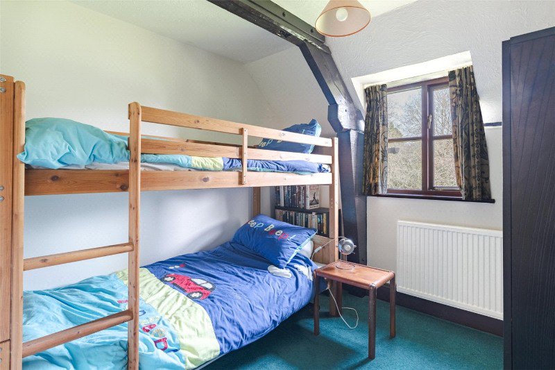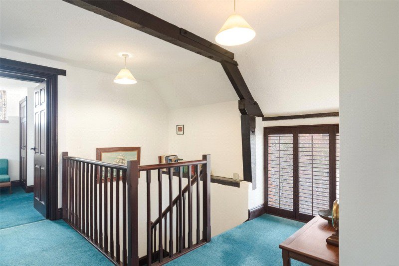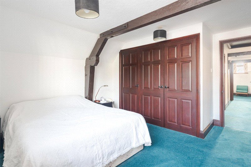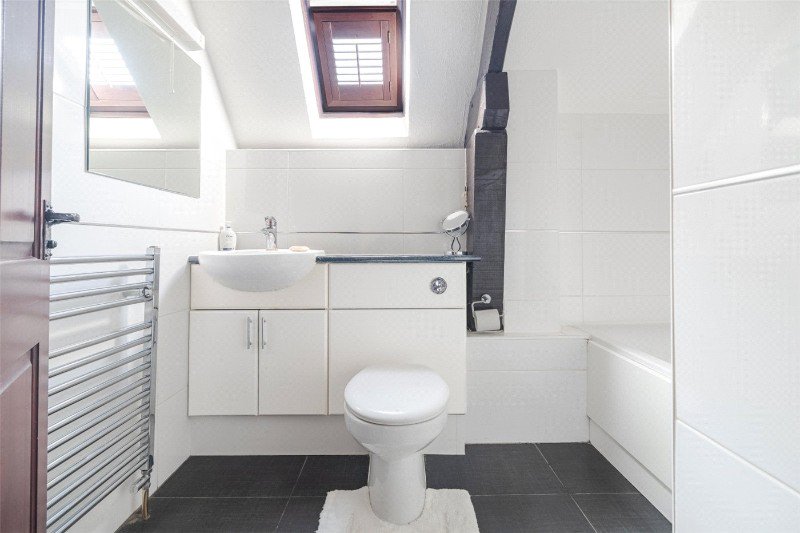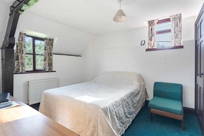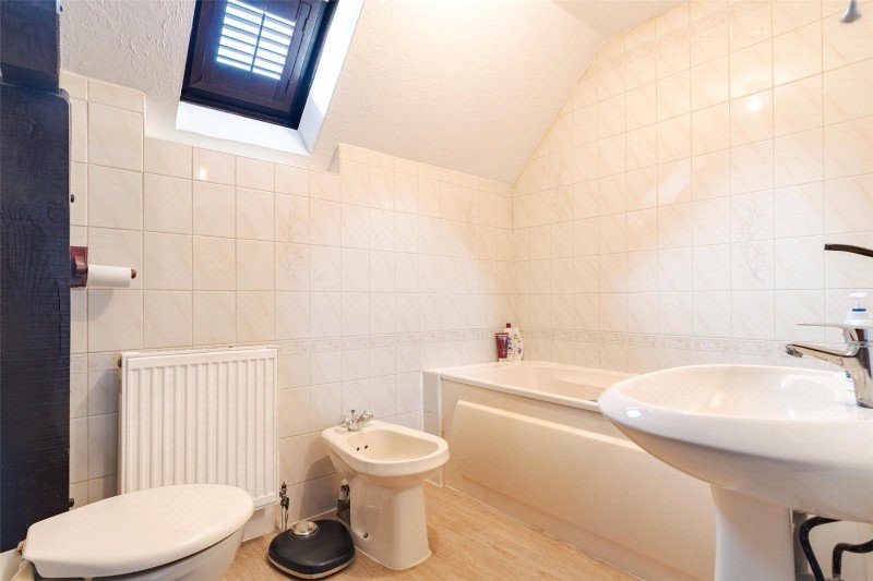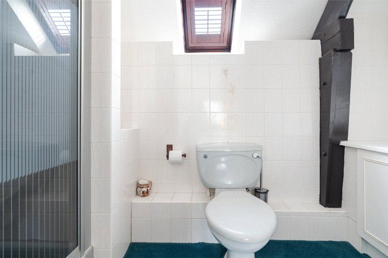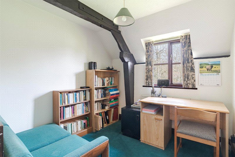 Bedroom 2 has a dual aspect, an exposed A-frame, 2 built-in wardrobes, and an en suite shower room (with skylight, shower, WC and wash basin). Bedroom 3 has free standing wardrobes, and bedroom 4 is currently arranged as an office. There is also a family bathroom with skylight, bath, wash basin and WC.