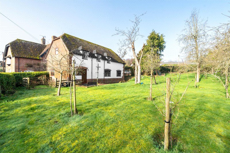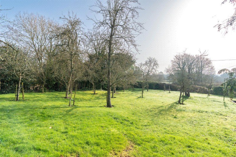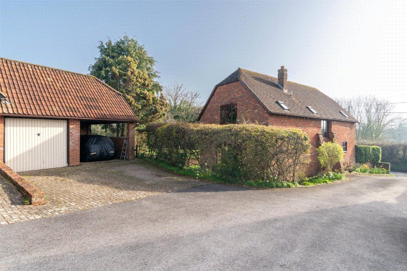 A central driveway leads to the courtyard, and a pavioured drive provides off road parking in front of a carport and adjacent garage (with up-and-over door, lighting and power points). A side gate leads to the large rear garden which has a paved terrace, exterior lighting and water tap, a low brick retaining wall, a flower bed, and a large lawn interspersed with fruit trees forming an orchard. The garden is enclosed by a mixed hedge and extends to the far side of the property where there is a kitchen garden area with rustic log rails and lovely views of the parish church.