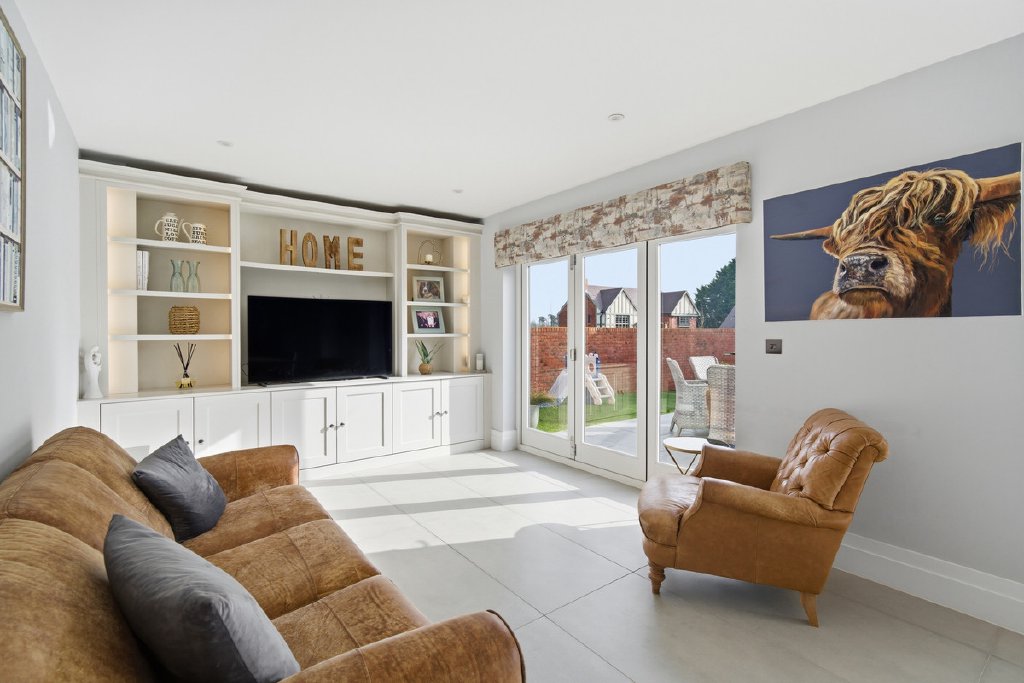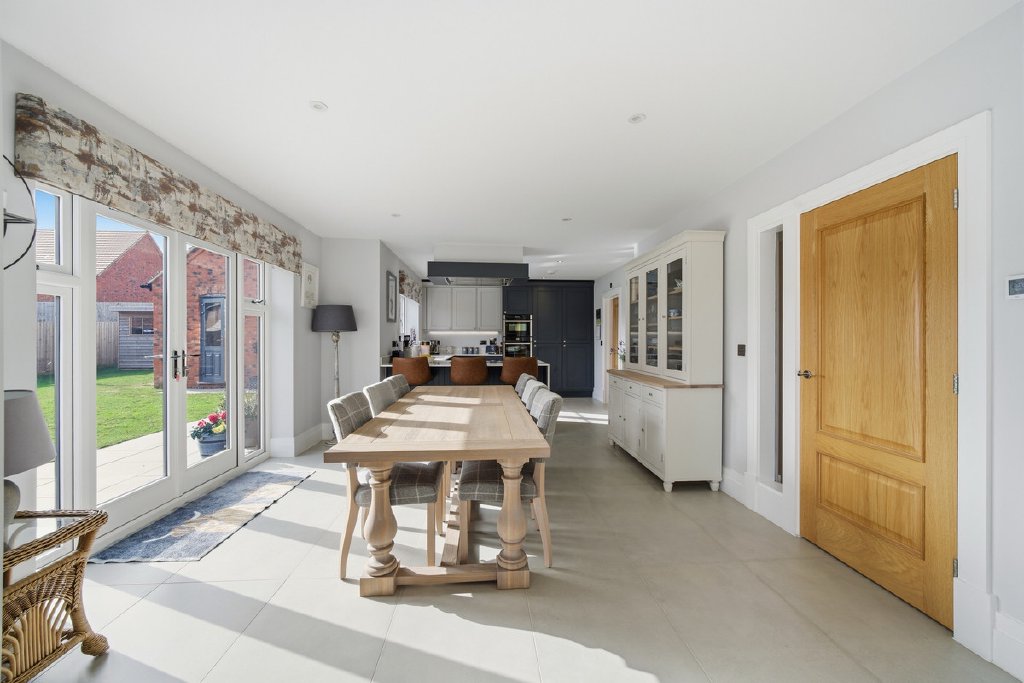 The hallway leads into a stunning open-plan kitchen, dining and family space, opening directly onto the rear garden — ideal for both everyday living and effortless entertaining. perfect for hosting parties and family gatherings. Two additional reception rooms offer versatile spaces for quiet relaxation, working from home, or welcoming guests.