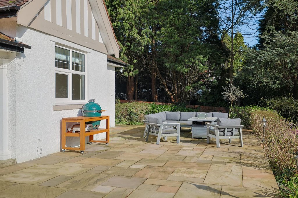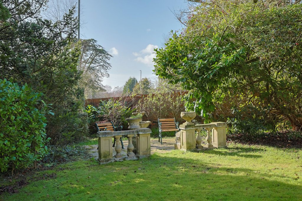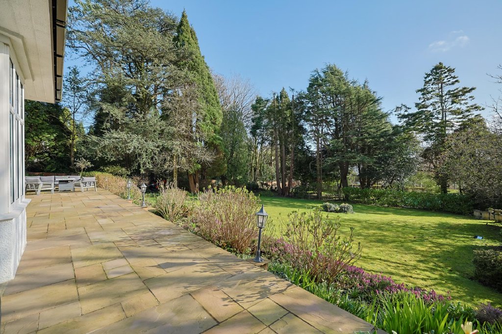 - Enclosed gardens with raised patios, lawn, greenhouse, and wood store