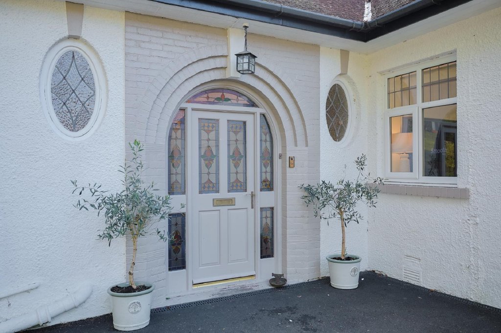 Arriving at 256 Gower Road, you are welcomed via double electric iron gates that open onto an impressive sweeping tarmac driveway. Lined with mature trees, shrubbery, and subtle lighting, the driveway guides you around the beautifully landscaped grounds, offering substantial parking for multiple vehicles. The private setting and expansive grounds immediately impress, providing a stunning first impression that perfectly complements this remarkable home.