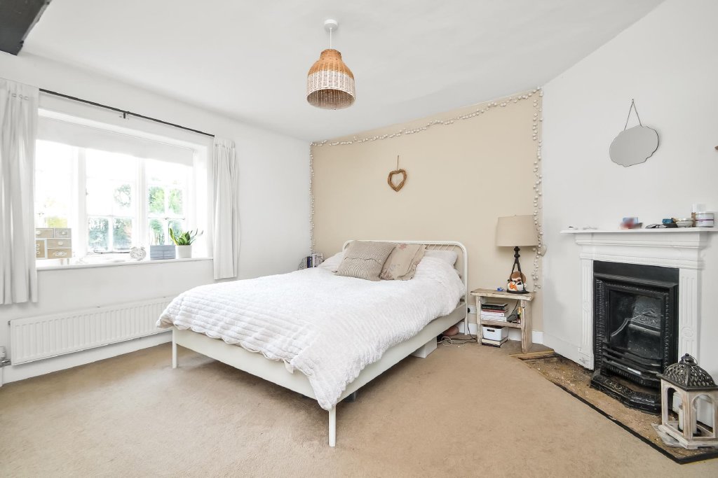 BEDROOM 1 13' 4" x 13' 0" (4.06m x 3.96m) Corner chimney breast with cast iron surround and tiled hearth, exposed beam to ceiling, windows to rear aspect overlooking garden with radiator under, panelled door.
