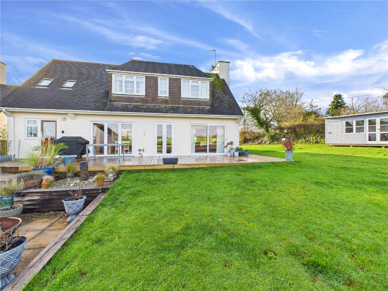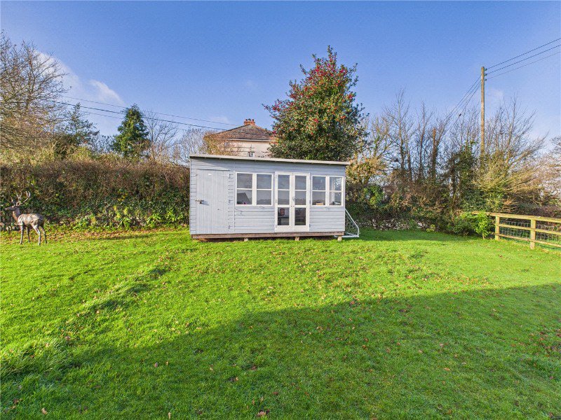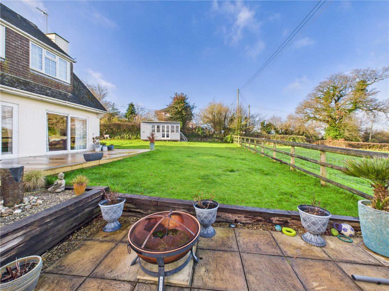 The property is approached via a private driveway providing off road parking and access to the garage. To the rear of the house is a large, decked terrace extending across much of the width of the property, providing an excellent space for outdoor dining and entertaining. Beyond the terrace lies a substantial lawned garden which is mainly level, enclosed and enjoys a good degree of privacy with open countryside views. Within the garden is a summerhouse and a detached outbuilding, offering potential for use as a home office, studio or hobbies room, subject to individual requirements.