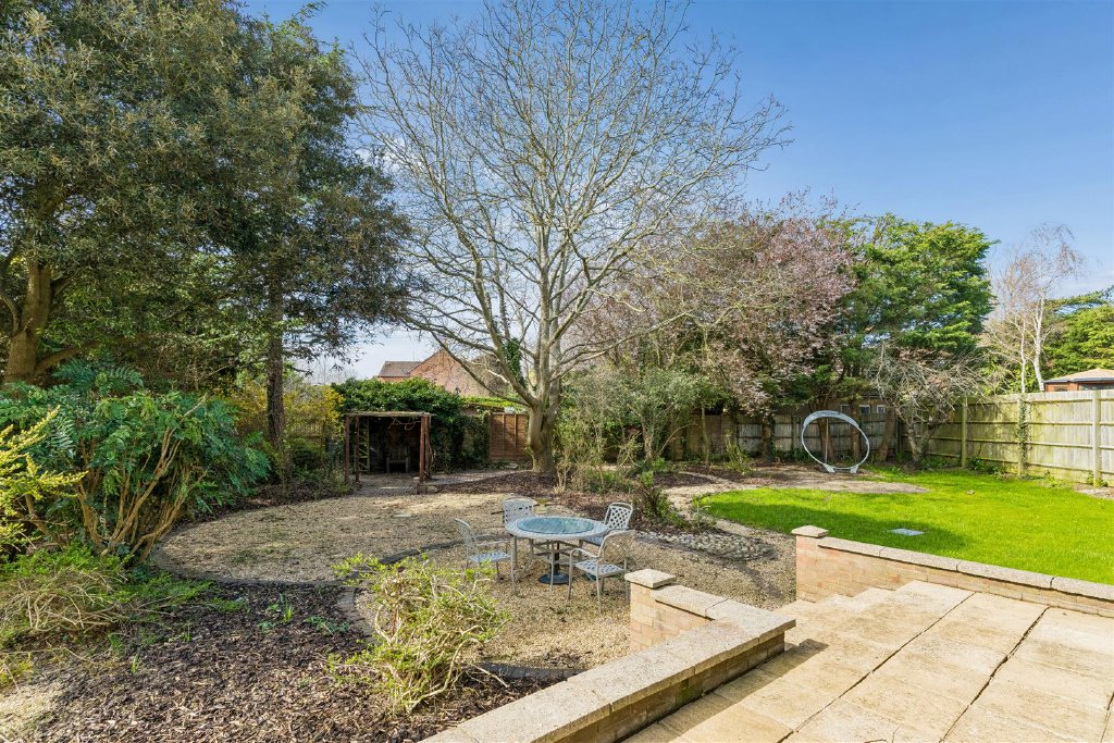 To the front of the property is an open driveway of brick paviours affording parking for a few cars and access to the garaging. This is set behind a low level brick wall. A large gate to one side of the property opens to the wrap around rear garden which is generously proportioned and stocked with various species of mature tree such as walnut, apple, pear, cedar, holm oak and also a pergola draped with a grapevine. A patio stands elevated form the garden overlooking various seating areas arranged over a gravel base. There are good areas of lawn and a wildflower garden contained within this fully fenced, private and secluded garden. This is an ideal setting to enjoy outdoor dining, children's play and seasonal entertaining.