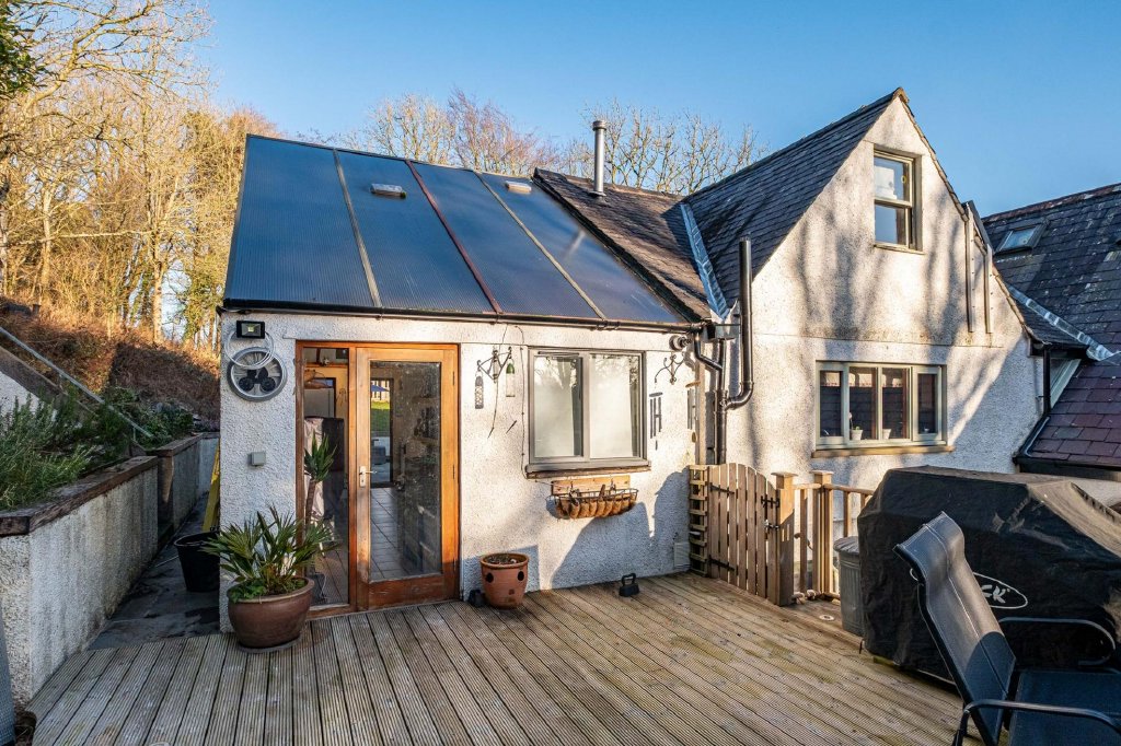 - Private Gardens, Terraces & Workshop – Sheltered patio, elevated wooden terrace, sunken courtyard and useful workshop/storage space.
