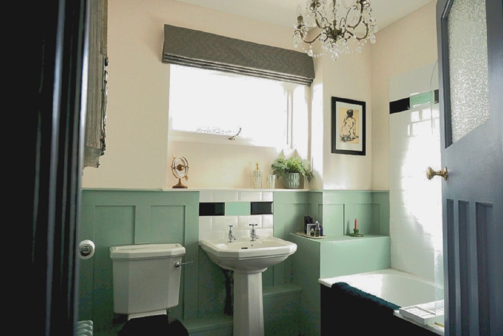 The family bathroom is beautifully appointed with a classic white suite, including a cast-iron bath with rain-head shower, WC, and wash basin, complemented by elegant tiling, soft lighting, and thoughtful design that combines period grace with modern luxury.