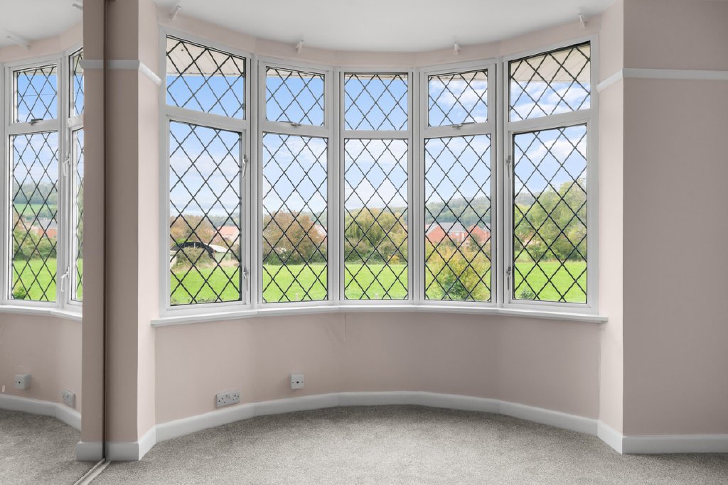 Upstairs, four double bedrooms provide excellent family accommodation, including an impressive principal bedroom with fitted mirror-fronted wardrobes and a large bay window framing superb countryside views. A newly fitted contemporary family bathroom completes the first floor.