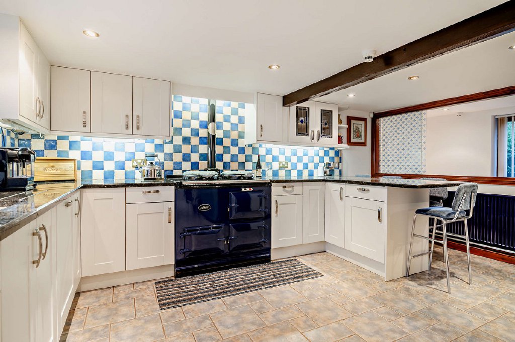 The heart of this luxurious home is the newly fitted kitchen breakfast room, featuring a beautiful AGA, perfect for creating culinary masterpieces. The breakfast bar is a delightful space for casual dining or sipping morning coffee while gazing out at the beautiful surroundings. A separate utility room ensures that daily chores remain discreetly hidden.