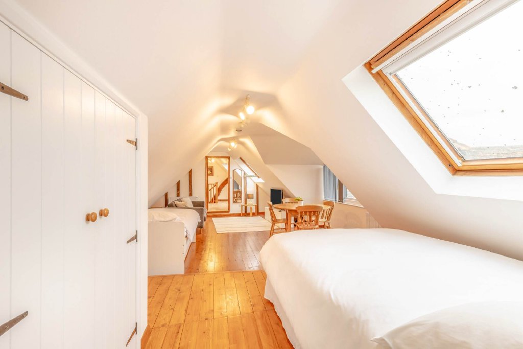 Byre House is a stunning family home, packed with period features on a generous plot, with a large garden and separate Annexe. The property comprises of a large luxury kitchen/breakfast room, separate utility room, beautiful sitting room cleverly lit with high vaulted ceilings, a woodburner and views over the most attractive garden. There are two double bedrooms on the ground floor (one benefitting from an ensuite) and a new family bathroom. The first flight of stairs leads to another double bedroom again with a bathroom ensuite and walk in cupboard. Leading away from this bedroom is a stunning mezzanine level, currently used as a study. It overlooks the sitting room and the garden and leads to another double bedroom and shower room, which can also be accessed via a separate staircase.