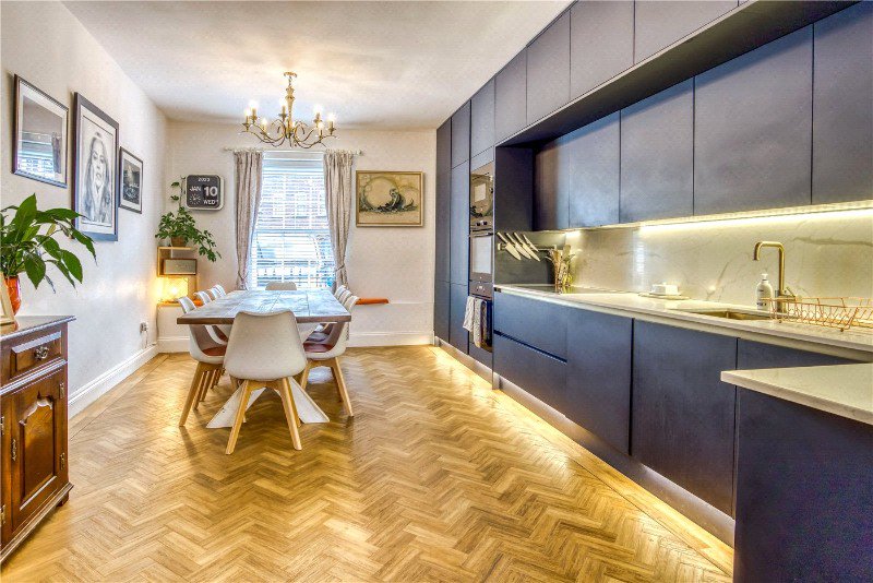 A well presented townhouse located in the heart of Old Town Poole, offering a blend of period character and considered modern updates. The property has been sympathetically refurbished while retaining a number of features typical of homes from this era, creating a balanced and comfortable living environment. The property is accessed via a covered walkway leading to the main front door. The ground floor comprises a spacious contemporary fitted kitchen with room for dining, providing a practical and sociable space. To the rear, a snug features bi-fold doors opening onto a private courtyard, offering a sheltered outdoor area suited to dining and entertaining. Stairs lead down to the basement level, which provides a cosy lounge alongside a WC and washroom, with the added benefit of underfloor heating. On the first floor, the accommodation includes bedroom one, a generously proportioned room featuring a freestanding bathtub, and bedroom three, which benefits from access to an ensuite, along with a separate WC. The second floor offers two further bedrooms (bedrooms two and four) together with the family bathroom, providing flexible accommodation across the upper floors. Further benefits include allocated parking to the front of the property. Overall, this is a well balanced townhouse offering character, practical living space and a sought-after position within Old Town Poole.