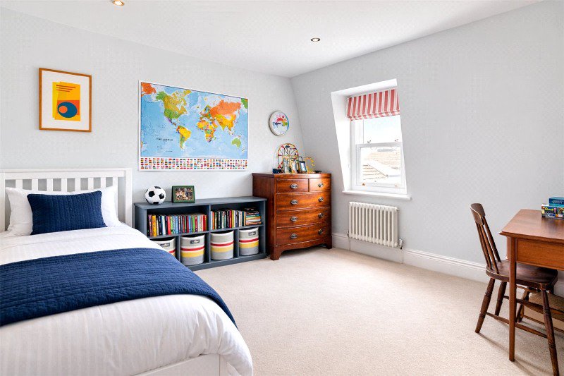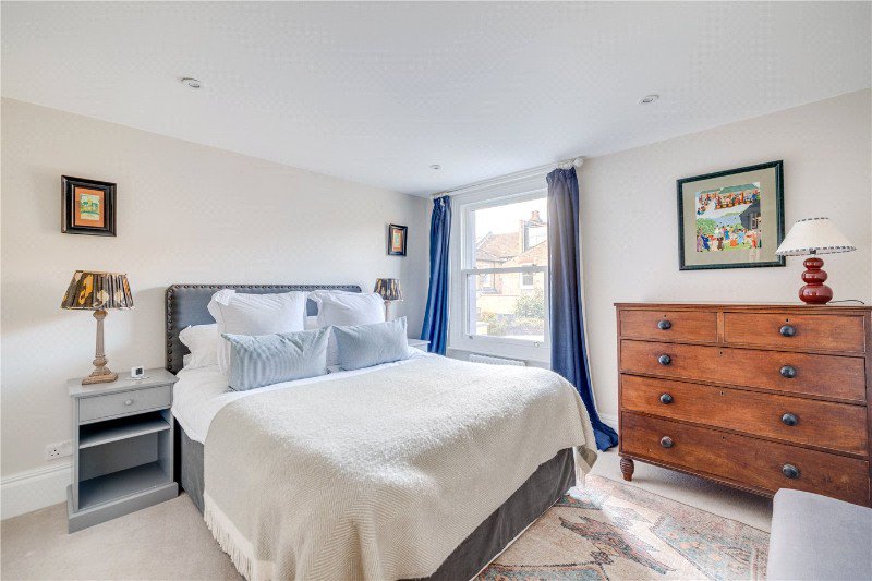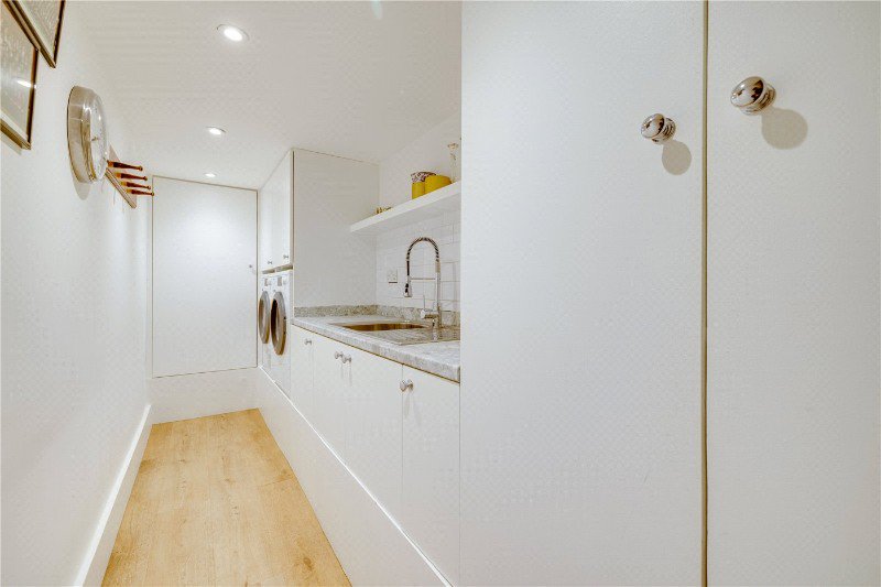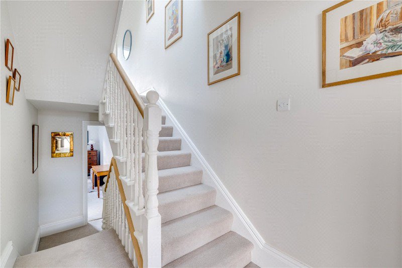 You enter the house through the generous entrance hall which leads through to a fabulous double reception room with a large bay window allowing in lots of natural light with impressive ceiling height. There are beautiful features in the form of the cornicing and antique limestone fireplace. The John Lewis of Hungerford kitchen is located at the rear of the property and benefits from an open-plan breakfast/dining room, offering a fantastic entertaining space. Off the kitchen is a useful larder providing further kitchen storage. This family room has a great feeling of space with sliding doors leading out on to a large, well maintained, beautifully presented garden. There is also a cloakroom on this floor and stairs that lead down to a well-kept utility room that provides valuable extra storage space.