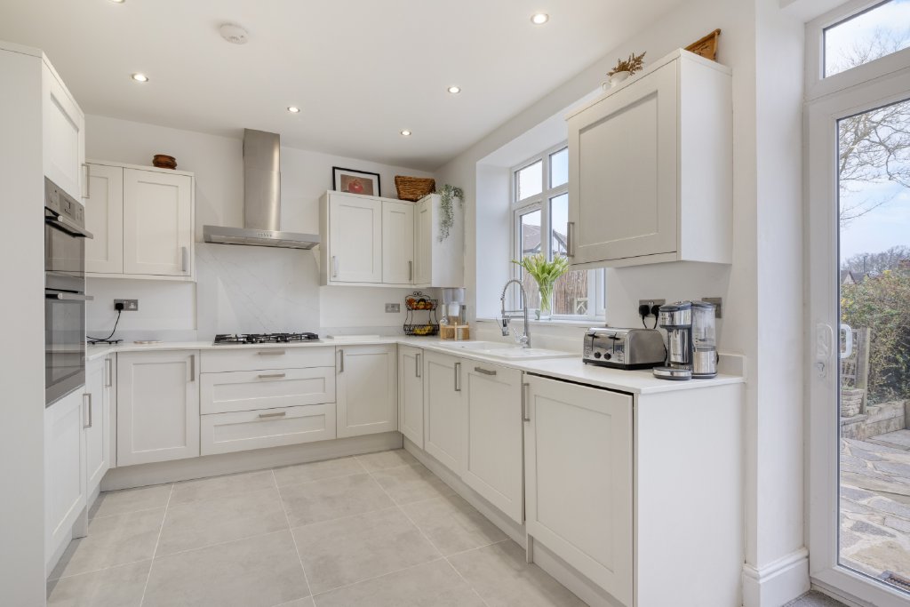 Externally, the home enjoys the advantages of its corner plot position, offering a sense of openness and privacy rarely found in similar properties. The garden has been carefully designed to provide both relaxation and entertainment space, with a charming summer house that creates the perfect retreat for working from home, creative pursuits, or simply enjoying peaceful moments overlooking the garden.