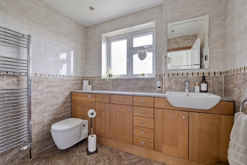 Upstairs, five further well-appointed bedrooms provide generous and flexible accommodation, easily adapting to the needs of growing families. These rooms are complemented by well-designed bathroom facilities, ensuring comfort and practicality for busy households.