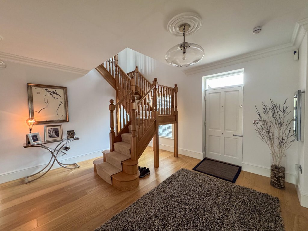 The first floor is arranged around beautifully presented bedrooms and luxurious bathrooms. The principal suite is particularly impressive, enjoying high ceilings, a Juliet balcony overlooking the gardens, a stylish ensuite and a fitted dressing room. The additional bedrooms are generously sized, each designed with comfort in mind, and served by elegant bathrooms.