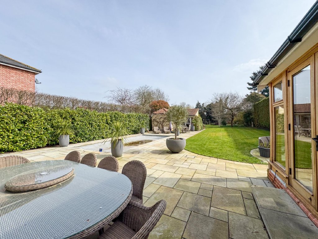 OVERVIEW Located in the heart of Dedham, this exceptional contemporary six/seven bedroom home offers beautifully appointed accommodation set within grounds of approximately 0.5 acres (STS). Designed with a focus on light, space and modern luxury, the property features landscaped gardens, a fully equipped outdoor kitchen, a heated swimming pool with pool house, and generous private parking behind a gated entrance. A superbly designed basement provides further versatile accommodation, completing this sleek and sophisticated home.