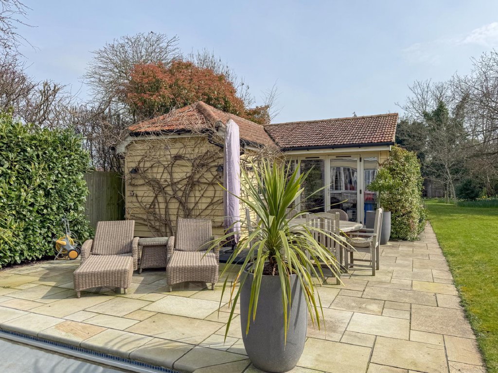 A heated swimming pool, together with a detached pool house, provides a resort-like feel, perfect for summer living. Beyond the pool area, a dedicated vegetable garden and potting shed sit neatly tucked away, offering both practicality and charm for those who enjoy growing their own produce
