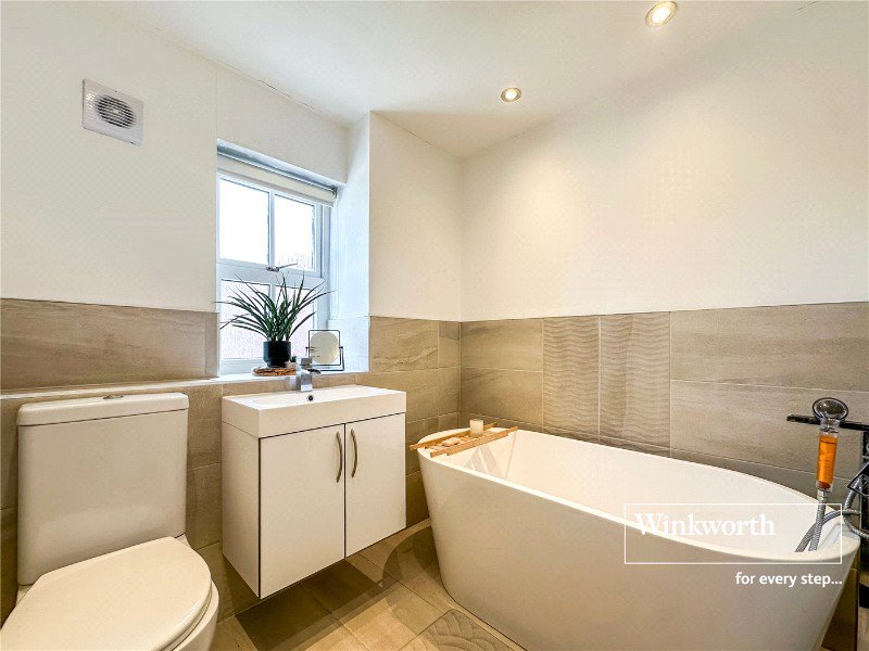 Upstairs there are four spacious bedrooms, the largest bedroom has a range of built in wardrobes and an en-suite shower room with a walk in shower, hand basin and wc. There are three further well-proportioned bedrooms, one of which has built in storage and a modern bathroom with free standing bath, wc and hand basin.