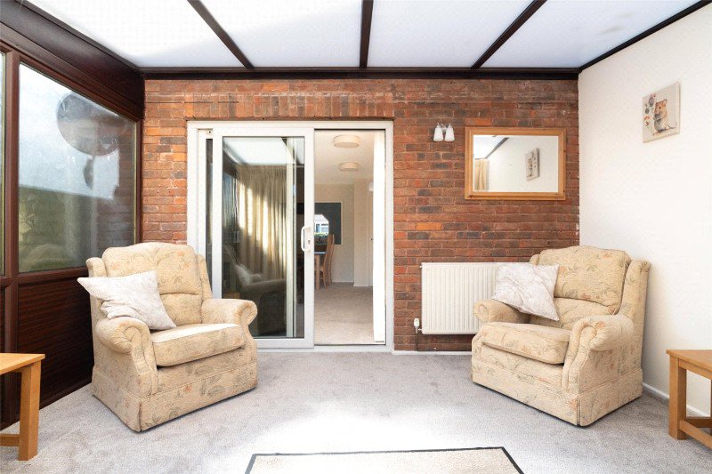 The lounge/dining room has a decorative fireplace with a fitted electric fire, and a double glazed patio door to a conservatory (with French doors to the patio garden).