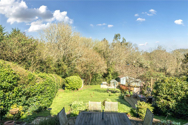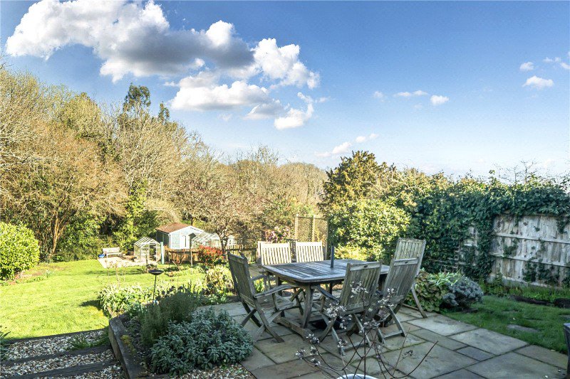The property enjoys a wonderful garden that extends to the rear and offers a lovely sense of privacy. A raised terrace adjoins the house and provides an ideal spot for outdoor dining while enjoying views across the garden. The main garden is predominantly laid to lawn with shaped borders, established planting, two garden sheds, greenhouse and space for further landscaping or vegetable beds if desired. To the front, the cottage benefits from driveway parking, along with an EV charging point. The setting is peaceful and green, with countryside and woodland close by.