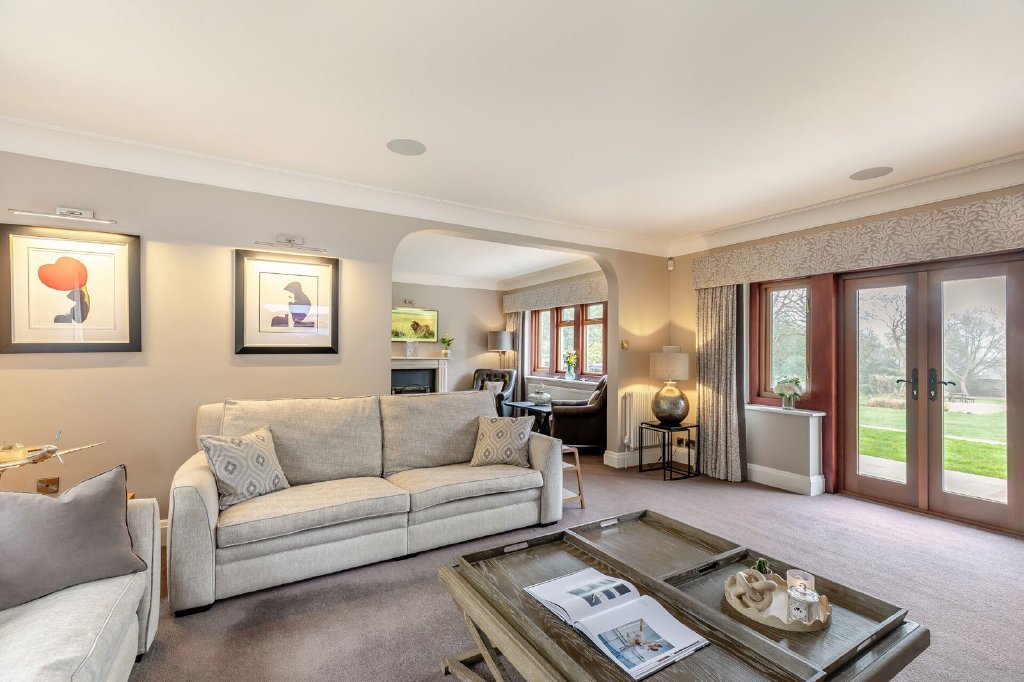 The generous L-shaped lounge and snug offers expansive proportions with windows to two aspects, the rear enjoying delightful views across the gardens, whilst twin doors open directly onto the flagged terrace. A feature stone fireplace houses a living flame gas fire, a second contemporary fireplace serves the snug and the room enjoys surround sound and in ceiling speakers.