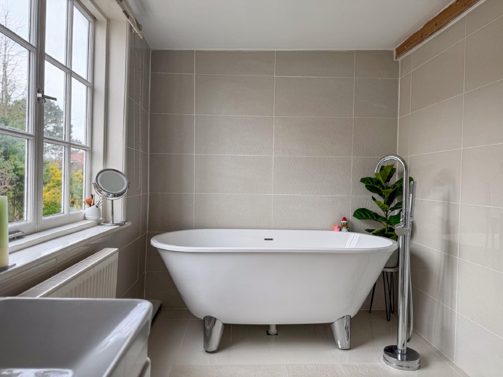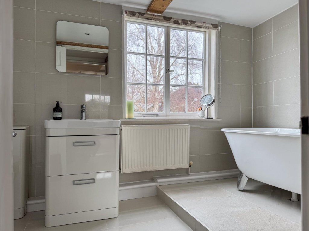 The first floor features three well-proportioned bedrooms. The principal bedroom benefits from an en-suite along with two walk-in wardrobes, creating a superb main suite. The remaining bedrooms are served by a spacious family bathroom, with roll top bath.