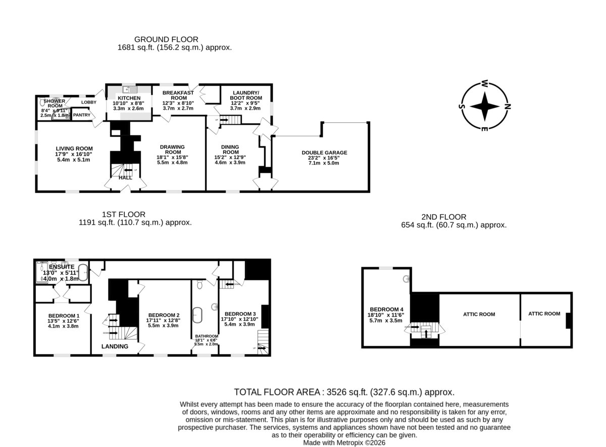 The ground floor offers a welcoming sitting room, an elegant dining room ideal for entertaining, and an impressive drawing room providing a grand yet comfortable living space. The kitchen/breakfast room is well appointed with an integrated range cooker and benefits from a traditional pantry. Practical additions include a ground floor shower room and a useful laundry/boot room.