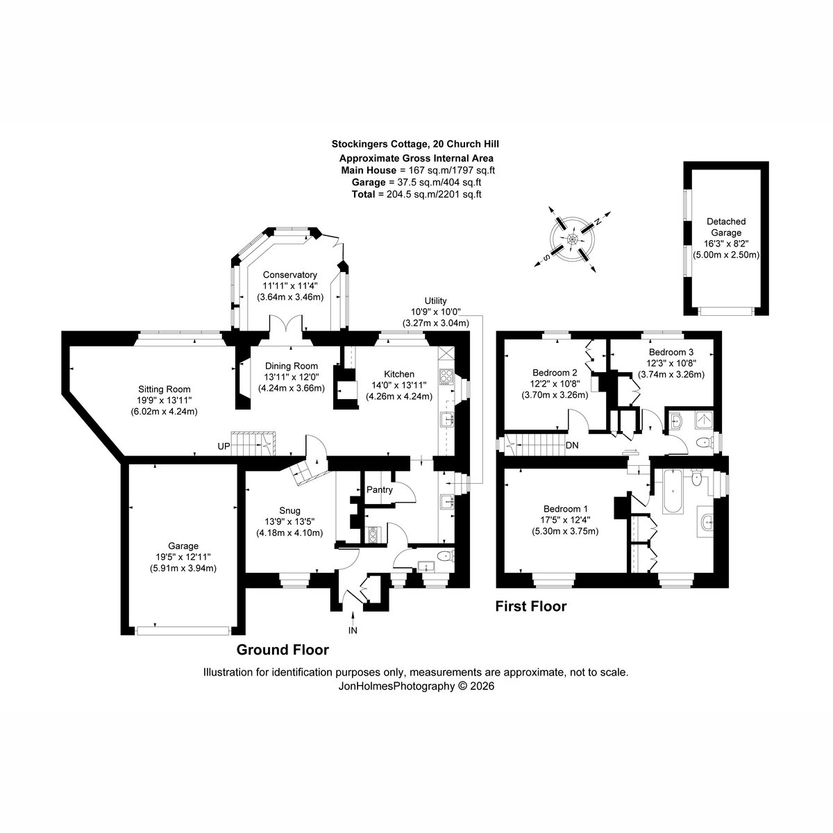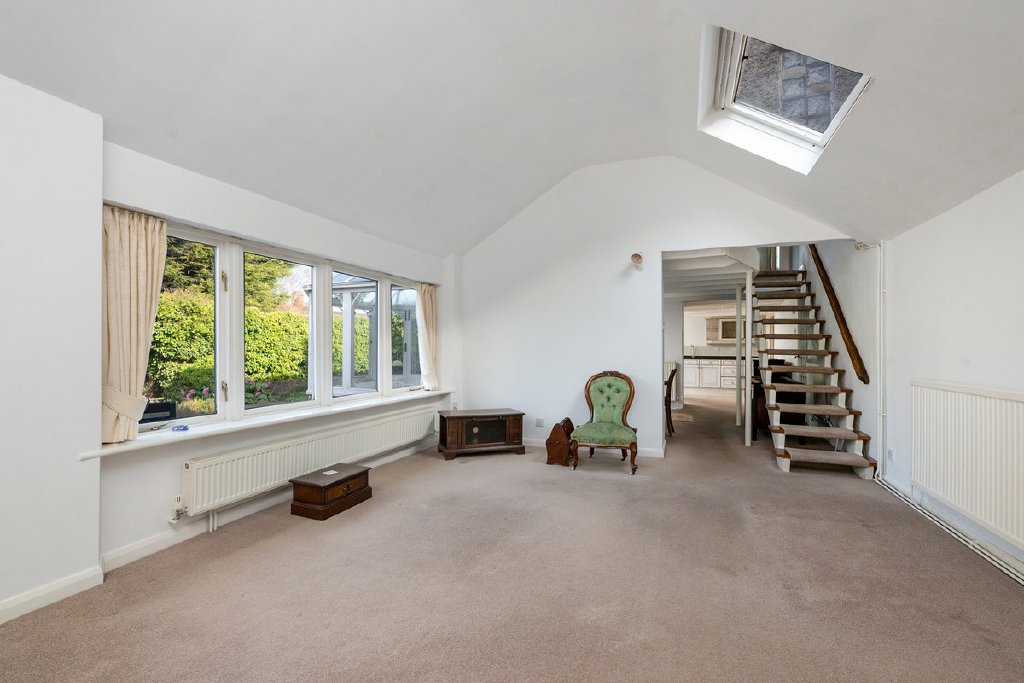 Step into this charming home through a central hallway, off which is a cosy snug with beamed ceiling and open fire. From the snug steps lead down to a large, open plan space which overlooks the rear garden and comprises of a large sitting room, dining room, conservatory and a light-filled kitchen. Off the kitchen is a utility room with pantry and cloaks/WC.